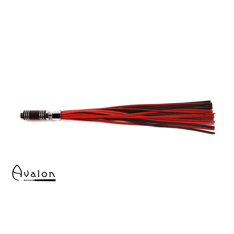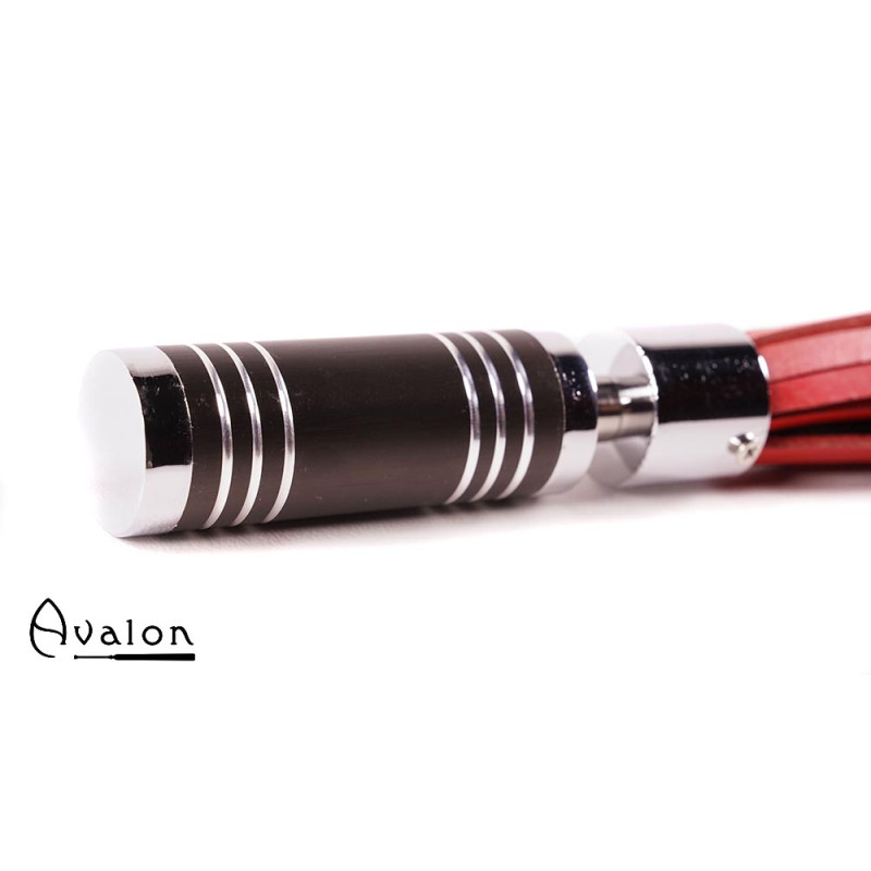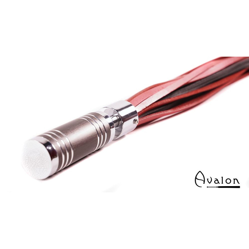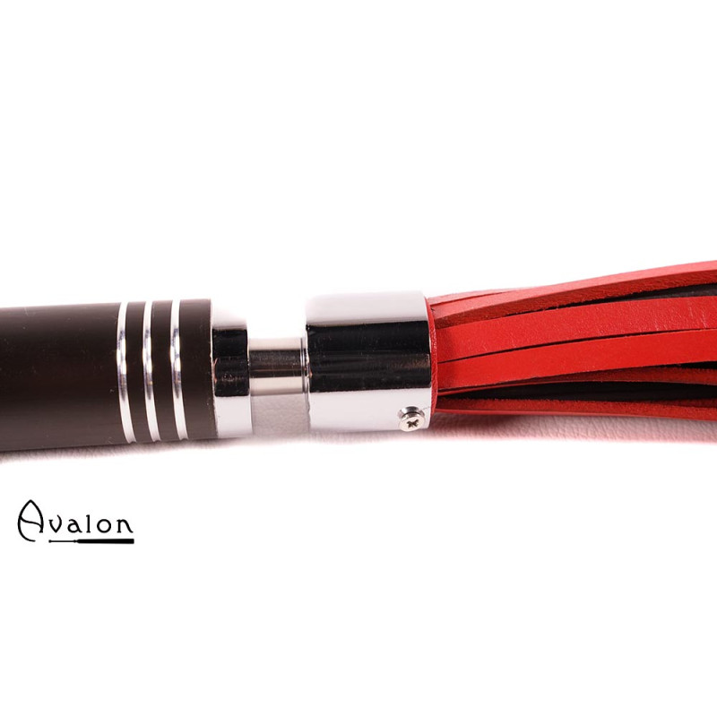 Avalon - WARLOCK - Sort og rød lærflogger med krom og brunt metallhåndtak