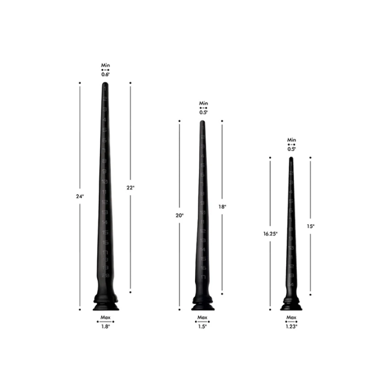 Dildoen starter smalt og går gradvis opp i størrelse, dette gjør den svært enkelt å føre inn.