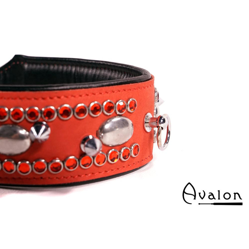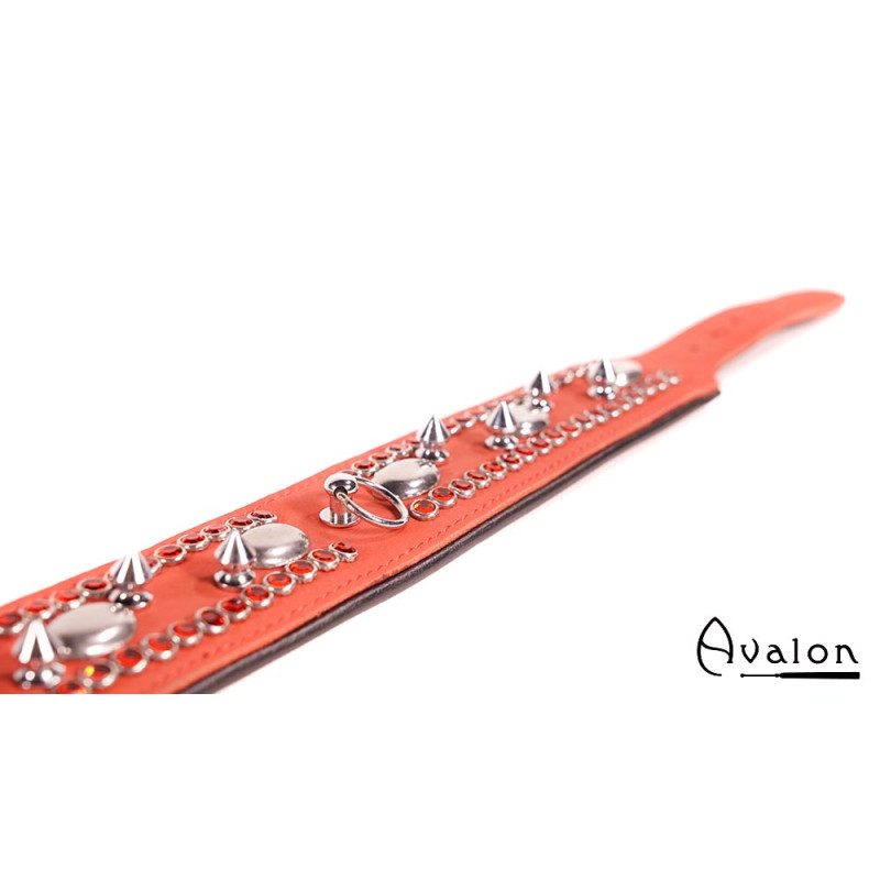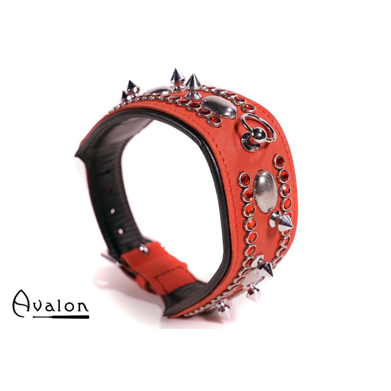 Avalon - QUEST - Collar med spisse nagler og strass - Rød og sort